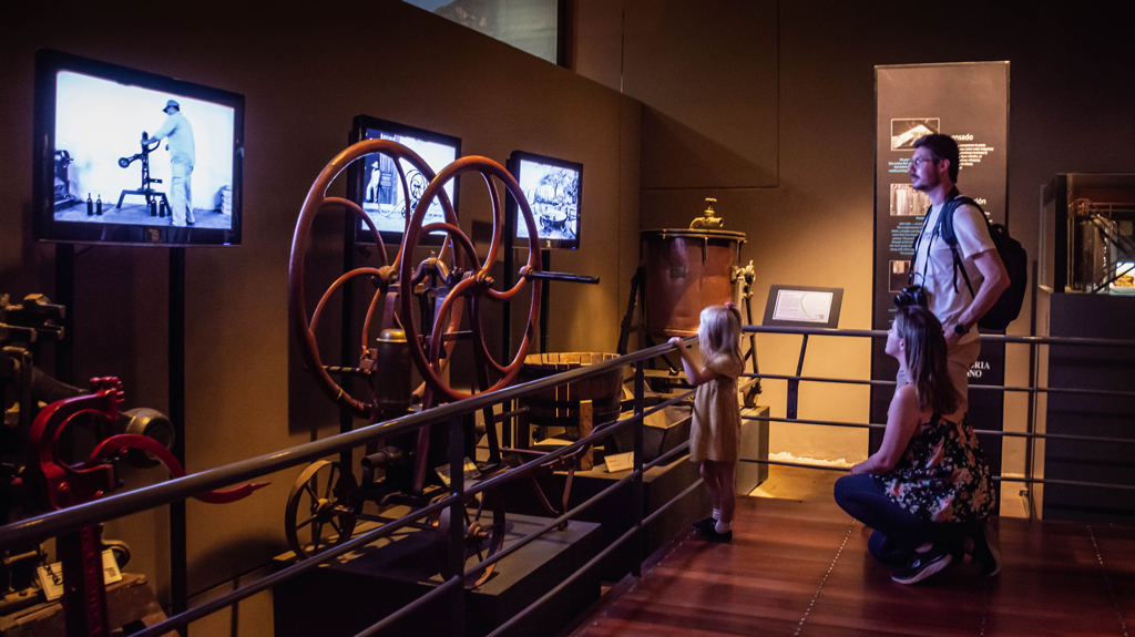 The Museum has two large rooms linked by a walkway. The tour begins in the first room: "Memory of the Vine", being a space where darkness predominates, in which you can watch audiovisual projections with continuous films. There may be overlapping sounds. At the end of the room, you follow a system of walkways that runs through the Wine Bar from the top, crosses the old pools, part of the patio, until you reach the second room: "Memoria del Vino". It is a space with more light and overlapping sounds.