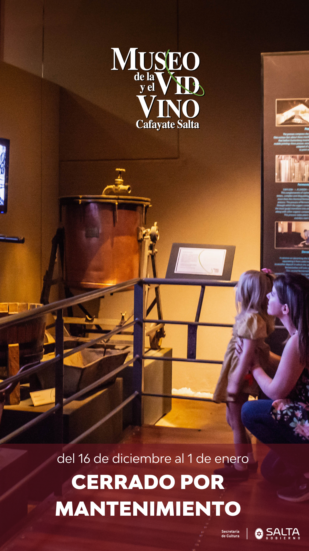 Se informa que a partir del lunes 16 de diciembre al 1 de enero 2025 se llevarán a cabo tareas de mantenimiento de las instalaciones que forman parte de la muestra permanente en cada una de sus salas.