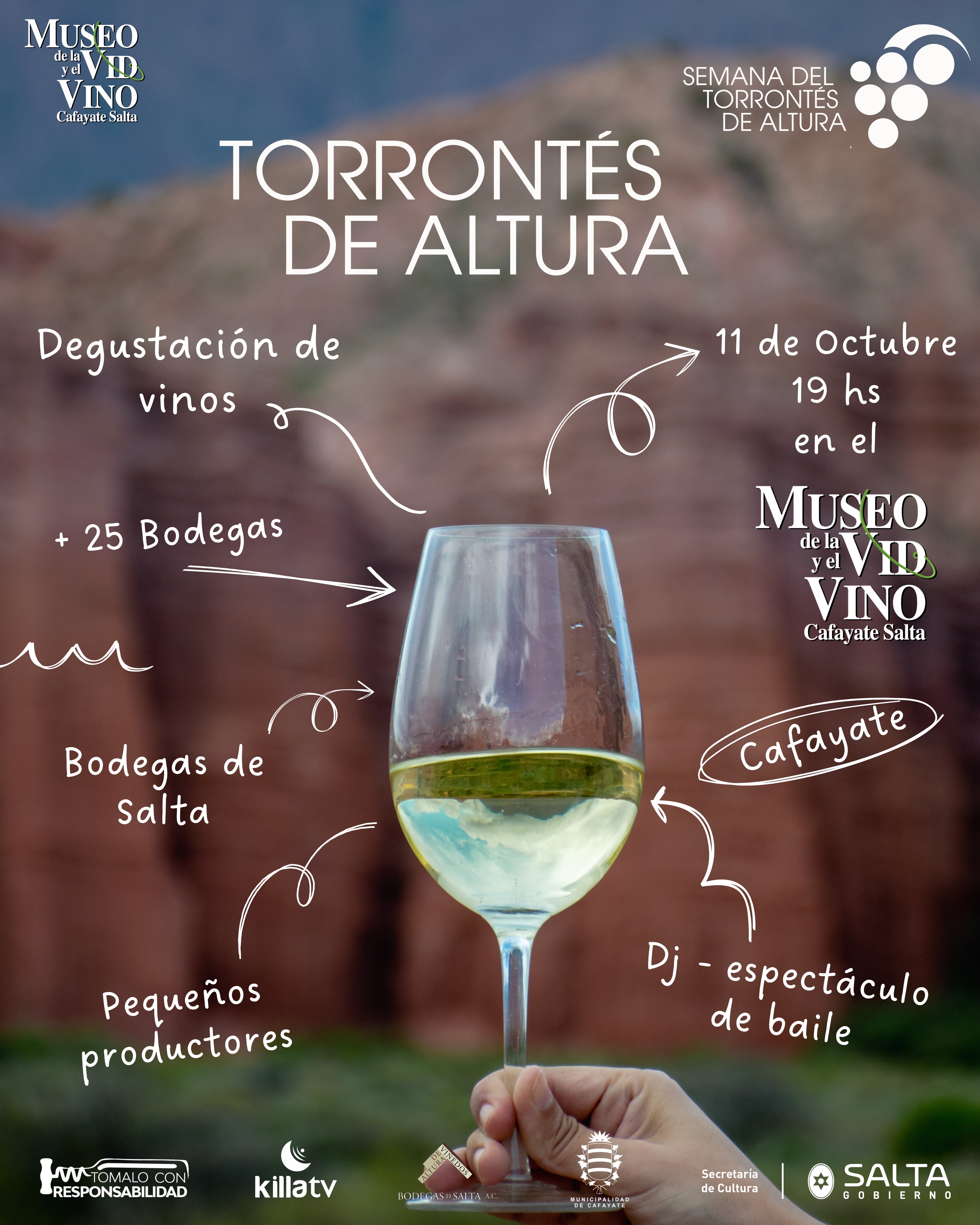 Te invitamos a disfrutar de una degustación de vinos de Bodegas de Salta y Pequeños Productores con Dj en vivo y espectáculo de baile.